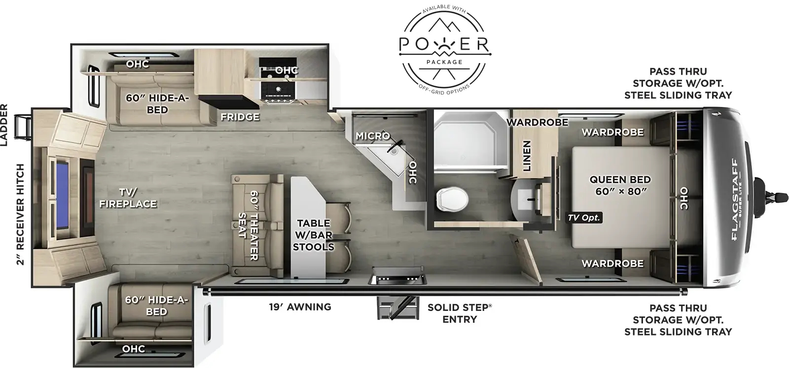 Hitch Weight930 lb.UVW7,873 lb.CCC2,076 lb.Exterior Length35' 4"Exterior Height11' 2"Exterior Width96"Fresh Water54 gal.Gray Water45 gal.Black Water45 gal.Awning Size19'